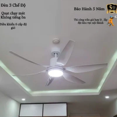 - Tiết kiệm không gian: Tích hợp cả quạt và đèn trong một sản phẩm giúp tiết kiệm không gian lắp đặt, đặc biệt phù hợp cho các căn phòng có diện tích hạn chế.